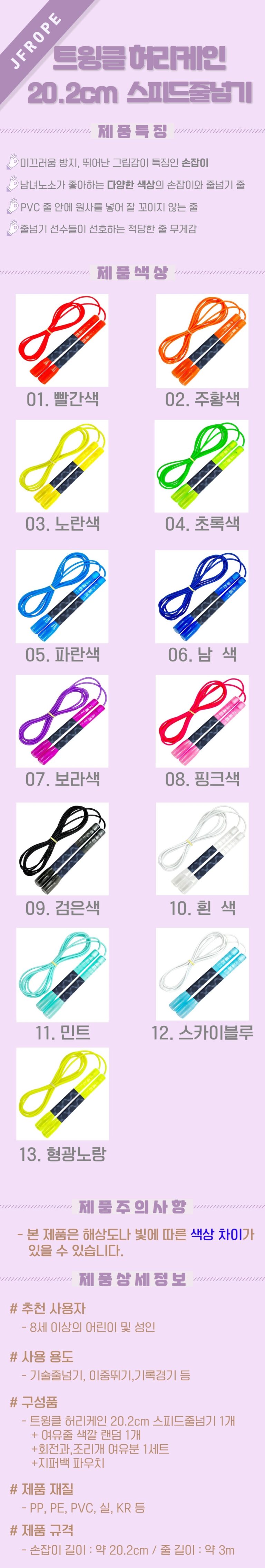 제이에프로프 트윙클 허리케인 스피드 줄넘기 20.2cm 판매가격22,800원제품번호트윙클 허리케인 스피드 줄넘기 20.2cm배송비무료배송브랜드JFROPE제조사/원산지JFROPE/대한민국 구매하기 상세설명